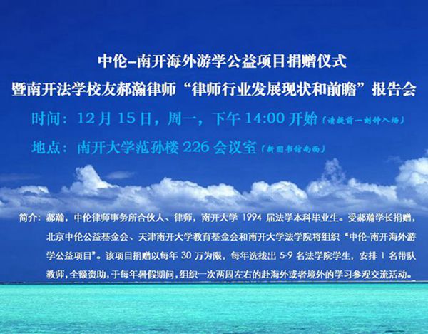 中伦-南开海外游学公益项目捐赠仪式暨南开法学校友 郝瀚律师“律师行业发展现状和前瞻”报告会