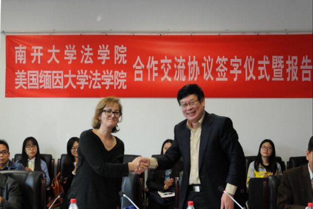 签字仪式环节,学院院长付士成教授首先代表学院对缅因大学L.L.M主任Emily Morris教授的到来表示欢迎,并对两院合作表示期待。随后,付士成教授与Emily Morris教授代表双方签署合作框架协议,就合作交流达成一致意见。