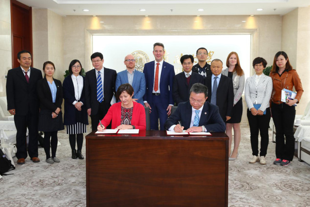 随后,我校副校长严纯华和爱尔兰都柏林大学副校长德洛莉丝•欧瑞丹教授(Dolores O’Riordan)代表双方签署法学硕士联合培养协议备忘录。根据此协议,学生在国内完成第一年的研究生学习后,赴都柏林大学完成一年的研究生学习,第三年返回南开完成余下学业。顺利完成两校的学业后可获得我校和都柏林大学的双硕士文凭。