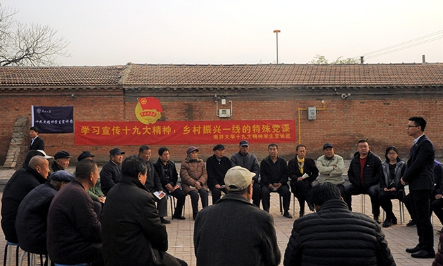 学院党员在深入学习十九大精神后,明确提出要结合专业知识,扎实学习宣传十九大精神,引导青年学子自觉做十九大精神的积极传播者和坚定践行者。11月12日,学院团委书记艾伟俊和我校十九大精神学生宣讲团成员及学院宣讲志愿者走进我校帮扶村,在武清区大王古镇韩指挥营村,通过互动、表演的形式,为村里的党员群众带来了一场生动的宣讲,共话乡村未来发展,现场发放十九大精神及法律知识宣传彩页100多份,《天津新闻》栏目专题长篇对活动进行了报道,《人民网》两次关注活动开展情况。学院研究生党支部还将于12月4日前后依托国家宪法日,开展“学习宣传十九大 宪法精神进万家”特色党日活动,旨在发挥法学生党员专业优势,真正让十九大精神和法治理念、宪法精神进农村、进企业、进社区,落地生根。