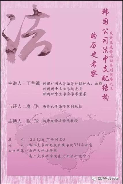 讲座预告 | 韩国公司法中支配结构的历史考察(韩国仁荷大学学院副院长丁莹镇教授)