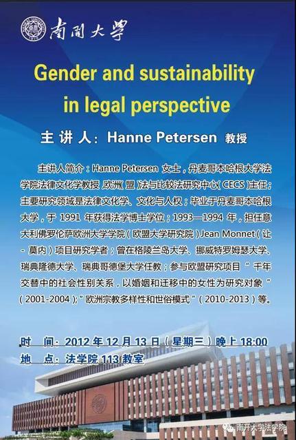讲座预告︱Gender and Sustainability in Legal Perspective