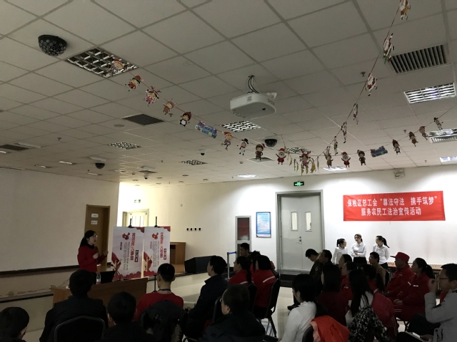 为响应全国总工会与教育部联合发起的“尊法守法携手筑梦”服务农民工法治宣传活动,在天津市总工会指导下,437必赢会员中心的师生走进民工社区,不仅向广大民工讲解了法律法规和相关政策,提供了法律救济方法及途径,以确保民工能依法维权,又同时宣扬了十九大法治精神,推动了新环境下的基层普法工作的开展。