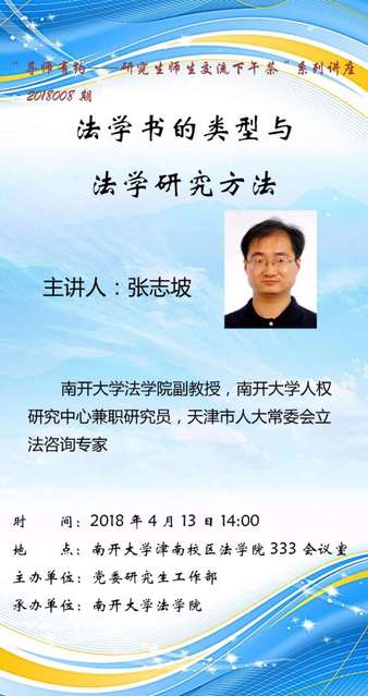 讲座预告:法学书的类型与法学研究方法(2018年4月13日)