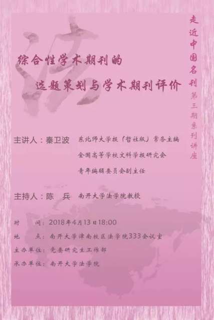 讲座预告:综合性学术期刊的选题策划与学术期刊评价(2018年4月13日)