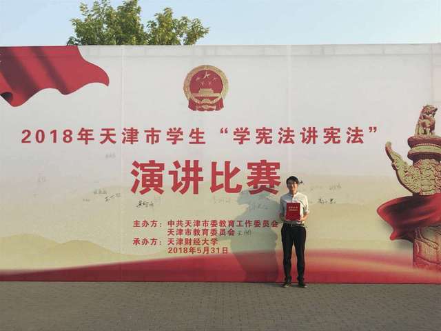 (通讯员 张梦媛)近日,天津市学生“学宪法 讲宪法”主题演讲比赛在天津财经大学举行,经过为期1天的激烈角逐,我校学院2016级本科生马红英夺得此次大赛高校组第一名的好成绩。