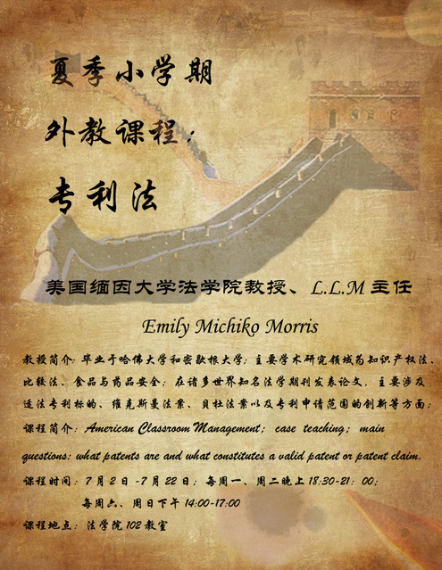 夏季学期外教课程《专利法》预告