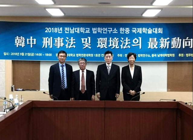 应韩国全南国立大学学院邀请,2018年9月21-22日,由副院长史学瀛教授、郑泽善教授、张玲教授、陈兵教授组成的南开学院代表团访问了全南国立大学学院。史学瀛教授代表我院与全南国立大学学院院长金淳锡教授签署了两院合作备忘录。签字仪式后,我院教授参加了由全南国立大学学院和437必赢会员中心联合举办的“中韩刑事法暨环境法最新动向”学术研讨会。