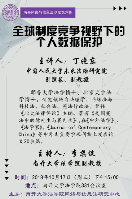 讲座预告:全球制度竞争视野下的个人数据保护(2018年10月17日下午3点)