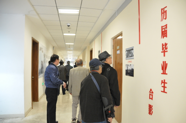 在学院领导的陪同下,老教师们参观了模拟法庭、接待室、学术报告厅、师资队伍照片墙、历届毕业生照片墙、教工活动室和资料中心。
