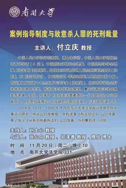 讲座预告:案例指导制度与故意杀人罪的死刑裁量(2018年11月20日)