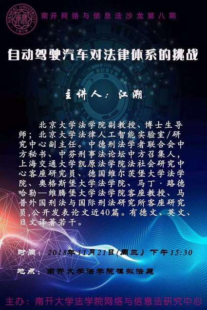 讲座预告:自动驾驶汽车对法律体系的挑战(2018年11月21日)
