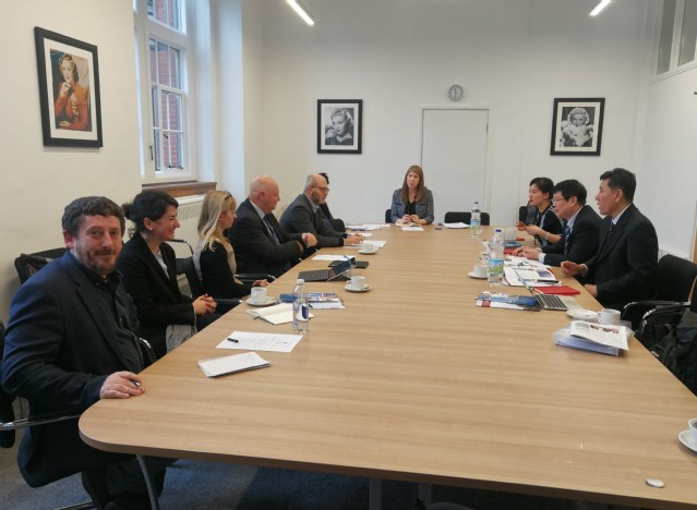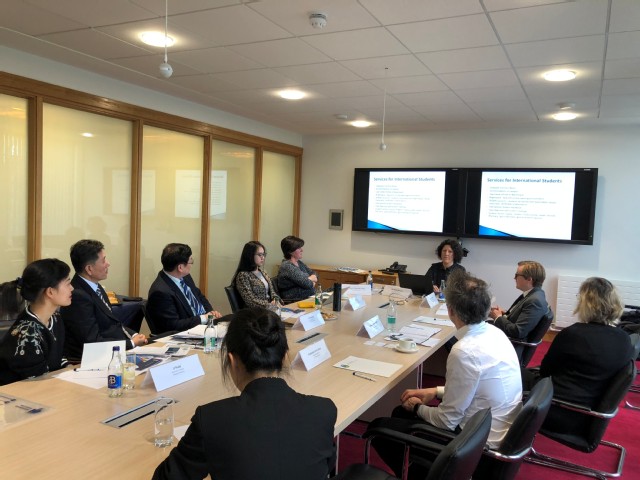 2018年11月18-23日,院长付士成教授、副院长史学瀛教授、李蕊佚副教授和魏玉洁老师组成的代表团访问爱尔兰都柏林大学、英国伯明翰大学、英国牛津大学学院,就深化院系间的合作进行对话和交流。19日,代表团访问爱尔兰都柏林大学,都柏林大学副校长、社会科学与法学学部主任科林•斯科特(Colin Scott) 会见了代表团成员,学院院长Imelda Maher带领都柏林大学学院团队与我院代表团进行了会见和会谈。