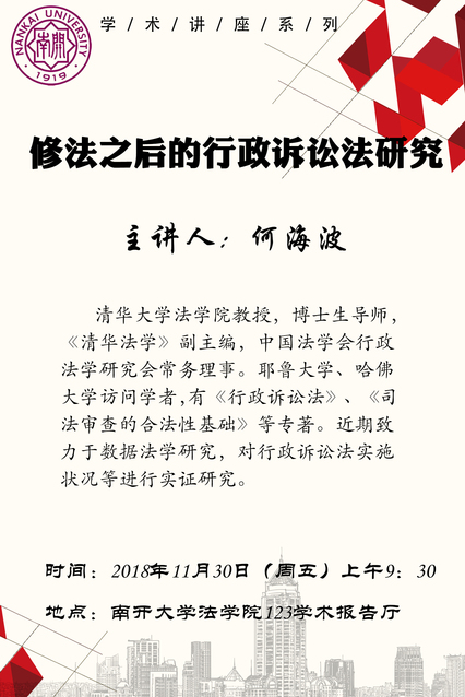 讲座预告:修法之后的行政诉讼法研究(2018年11月30日)