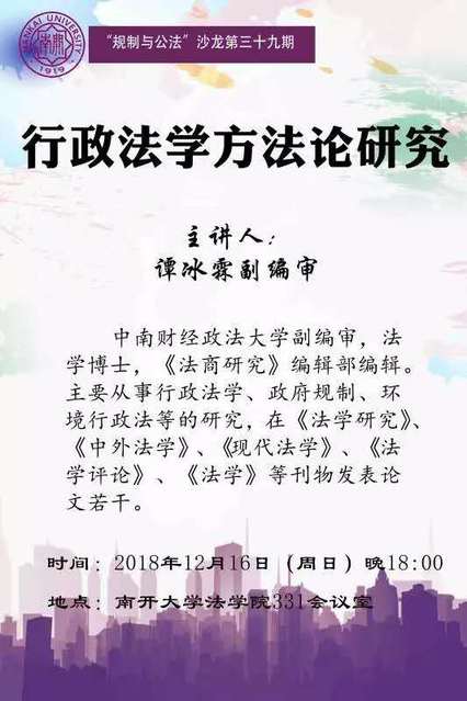 ”规制与公法“沙龙第39期预告:行政法学方法论研究(2018年12月16日)
