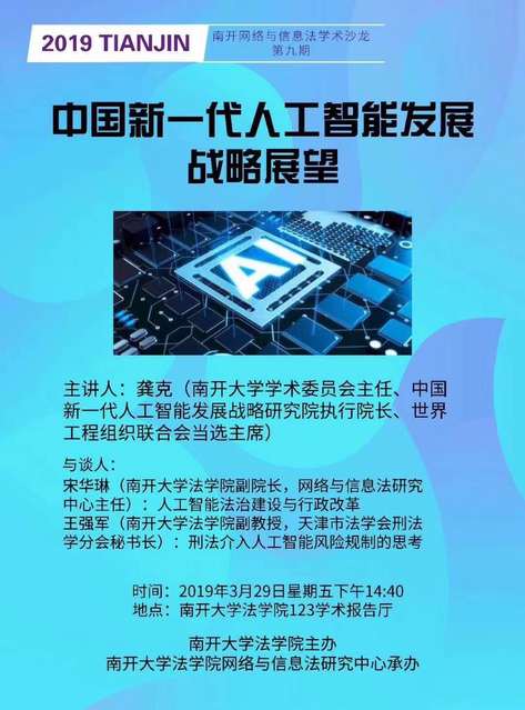 南开网络与信息法学术沙龙第九期:中国新一代人工智能发展战略展望(3月29日下午14:40)