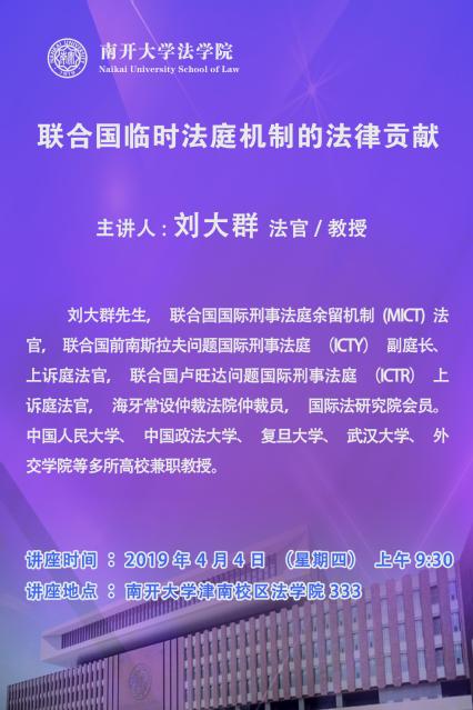 讲座预告:联合国临时法庭机制的法律贡献(2019年4月4日)