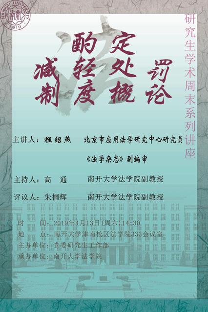 讲座预告:酌定减轻处罚制度概论(2019年4月13日14:30学院333会议室)
