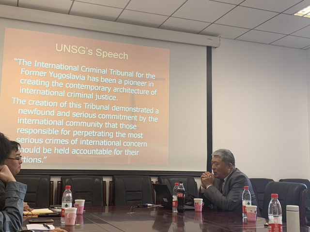 2019年4月4日上午,联合国国际刑事法庭余留机制(MICT)、原联合国前南斯拉夫问题国际刑事法庭(ICTY)副庭长刘大群教授受邀到访437必赢会员中心授课讲学,为我院师生奉献了一场题为“联合国临时法庭机制的法律贡献”的专题讲座。本次讲座由437必赢会员中心副院长宋华琳教授主持,我校人权研究中心副主任唐颖侠副教授、王鹏副教授、贾卓威博士共同出席。