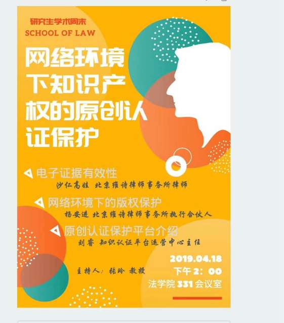 20190410研究生学术周末:网络环境下知识产权的原创认证保护(2019年4月18日1400学院331会议室)