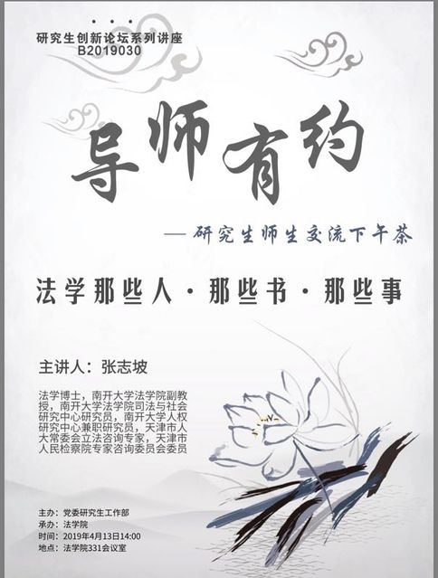 研究生创新论坛系列讲座:法学哪些人 那些书 那些事(2019年4月13日14:00学院331会议室)