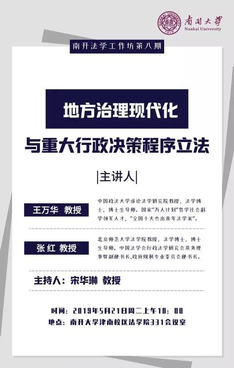 讲座预告: 地方治理现代化与重大行政决策程序立法(20190521)