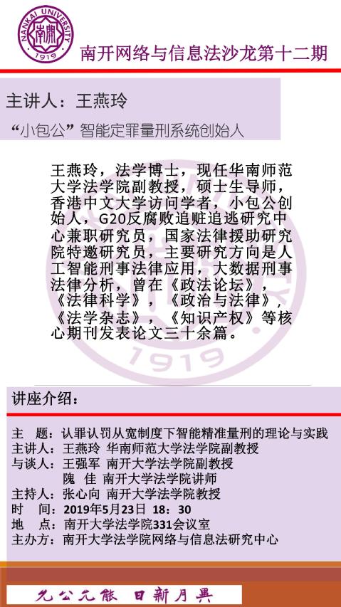 讲座预告|认罪认罚从宽制度下智能精准量刑的理论与实践