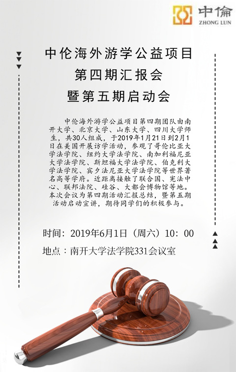 中伦海外游学公益项目第四期汇报会暨第五期启动会(6月1日上午10点,学院331会议室)