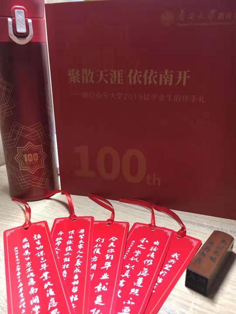 学校为2019届毕业生准备了一份“暖心”大礼包,统筹设计了以“聚散天涯依依南开”为主题,兼容同学录功能与各部门毕业福利卡券功能的“毕业手册”。学院为学院全体本硕博毕业生设计制作了专属印章,作为学院2019年毕业留念。