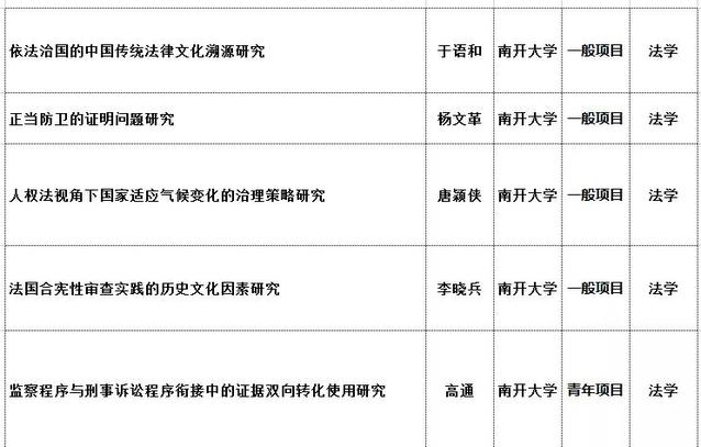 我院法律史学科于语和教授主持的“依法治国的中国传统法律文化溯源研究”课题,诉讼法学科杨文革教授主持的“正当防卫的证明问题研究”课题,国际法学科唐颖侠副教授主持的“人权法视角下国家适应气候变化的治理策略研究”,宪法行政法学科李晓兵副教授主持的“法国合宪性审查实践的历史文化因素研究”课题获得国家社科基金一般项目立项。