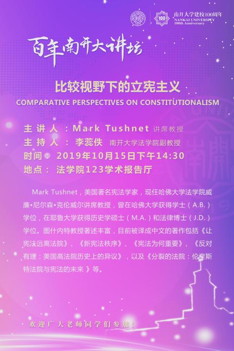 百年南开大讲坛预告:比较视野下的立宪主义(10月15日14:30学院123报告厅)