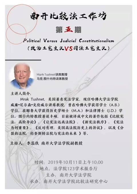 哈佛大学宪法教授Mark Tushnet系列讲座预告:政治立宪主义vs司法立宪主义(20191011)