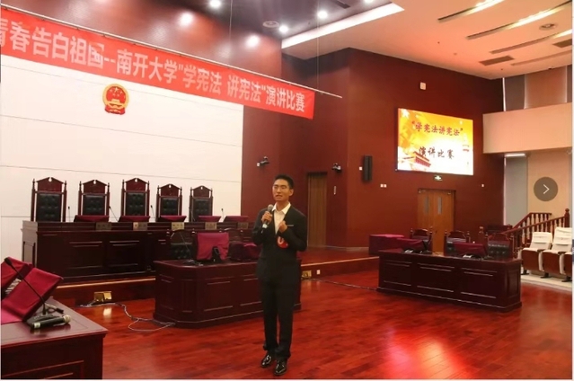 通讯员(周敬文 黄逸凡)9月28日,青春告白祖国——我校“学宪法讲宪法”演讲比赛暨天津市第四届学生“学宪法讲宪法”活动我校选拔赛决赛在学院模拟法庭成功举办。