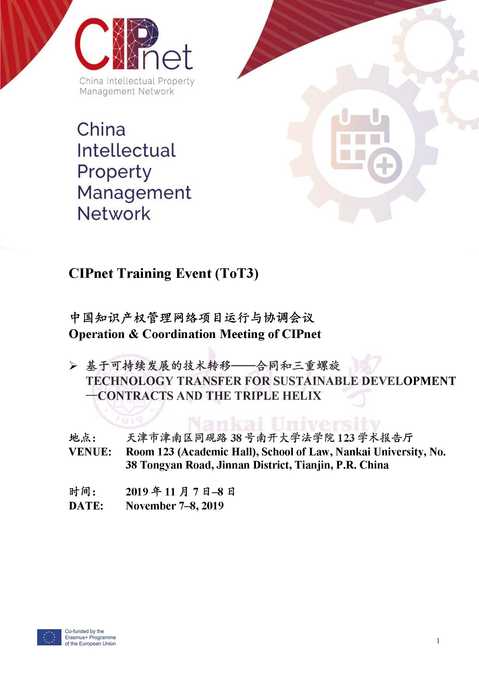 中国知识产权管理网络项目运行与协调会议预告(20191107-1108)