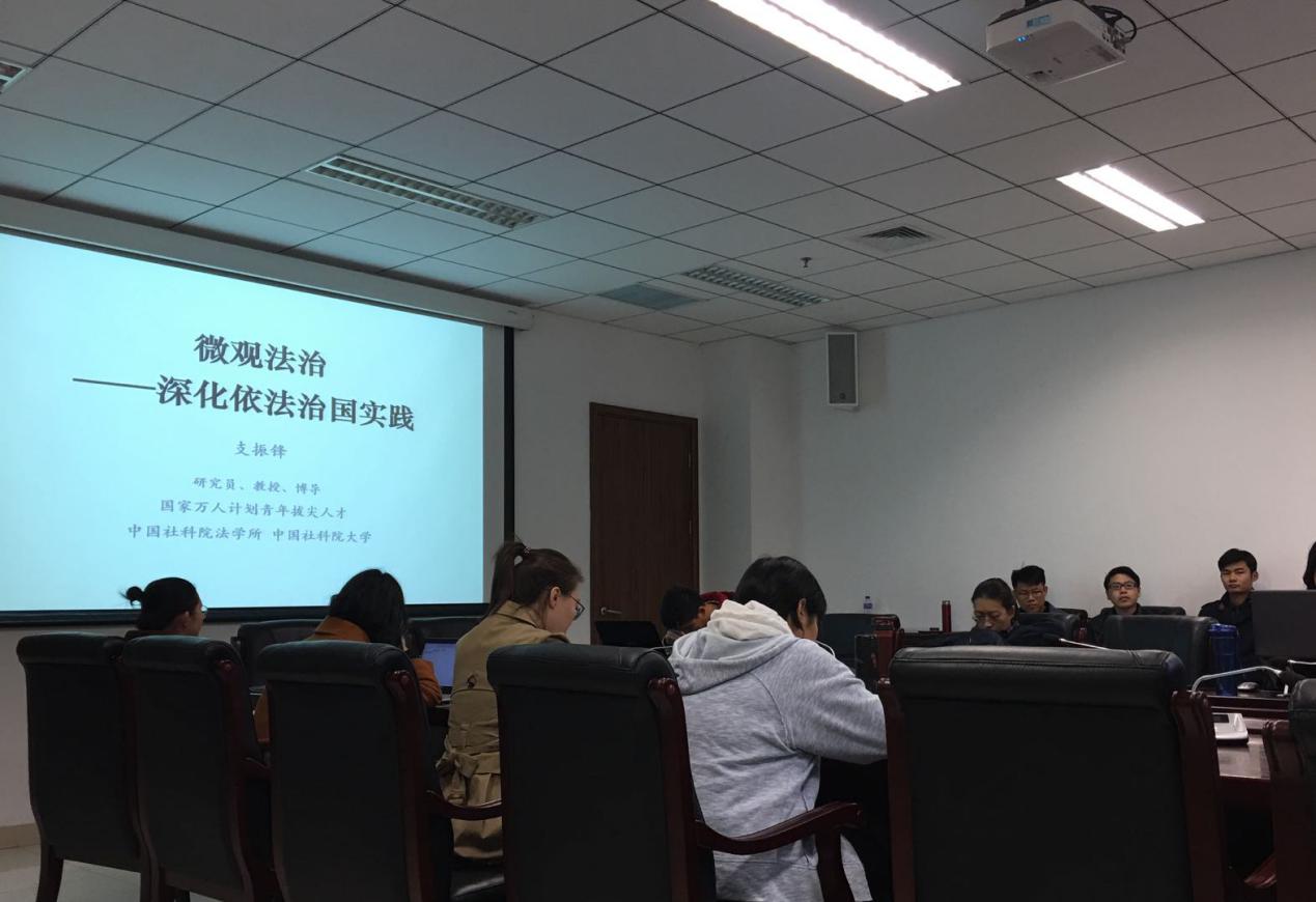 (通讯员 孙鸽)11月1日下午,中国社科院法学研究所研究员、中国社会科学院大学长聘教授、《环球法律评论》杂志副主编支振锋老师应邀做客第十二期“南开法学工作坊”,以“微观法治:新时代与新视角”为主题,为我院师生做了一场学术报告。本次讲座由437必赢会员中心法理学教研室主任王彬副教授主持,中南大学学院彭中礼教授、437必赢会员中心朱桐辉副教授以及来自437必赢会员中心各专业的同学参加了本次讲座。