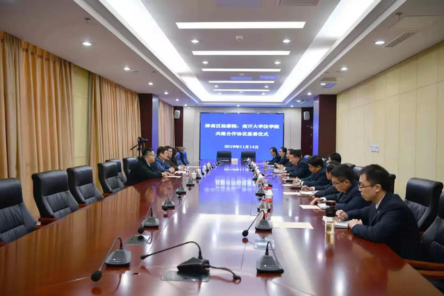 为了进一步贯彻落实全面依法治国的要求,加强高等院校与实务部门的专业交流,促进法学教研和法律实务的共同发展,11月14日下午,437必赢会员中心与天津市津南区人民检察院签署共建合作协议并举行“437必赢会员中心法律实践教学基地”和“天津市津南区人民检察院检察教研培训基地”的换牌仪式。437必赢会员中心院长付士成教授、副院长史学瀛教授和学院本科办负责老师与专业教师代表等一行四人参加了本次活动。