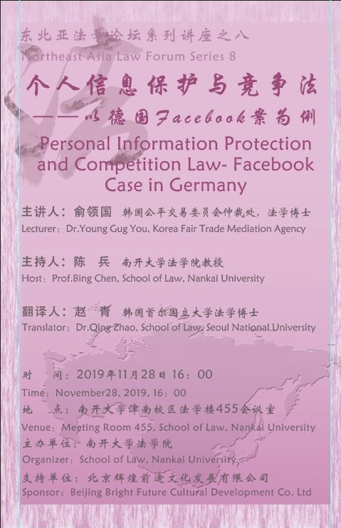 东北亚法学论坛系列讲座之八:个人信息保护与竞争法(11月28日16:00学院455)
