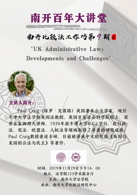 百年南开大讲坛暨南开比较法工作坊第九期:英国行政法的发展与挑战