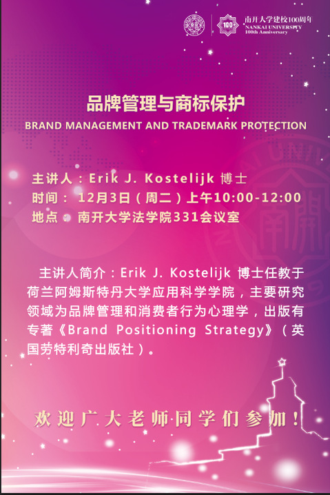 讲座预告:品牌管理与商标保护(12月3日10点学院331)