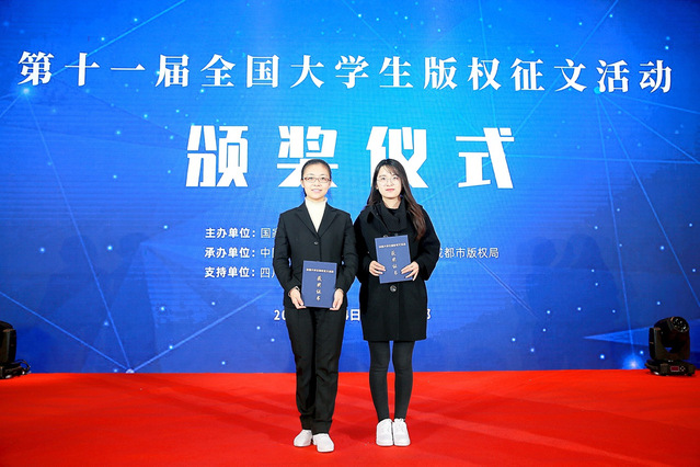 (通讯员 陈颖)2019年12月4日,由国家版权局主办、中国人民大学国家版权贸易基地和成都市版权局承办的第十一届全国大学生版权征文活动颁奖仪式在四川成都举行。征文活动历时六个月,共收稿1492篇,其中本科生论文906篇,研究生论文586篇,全国29个省、自治区、直辖市,以及香港、澳门特区,共计234所高校参与。经过初筛、初审、复评、终评,最终产生了特等奖论文3篇,本科生组和研究生组一等奖论文各10篇、二等奖论文各20篇、三等奖论文各30篇,优秀奖论文30篇,优秀指导老师奖20名,优秀组织奖20名。