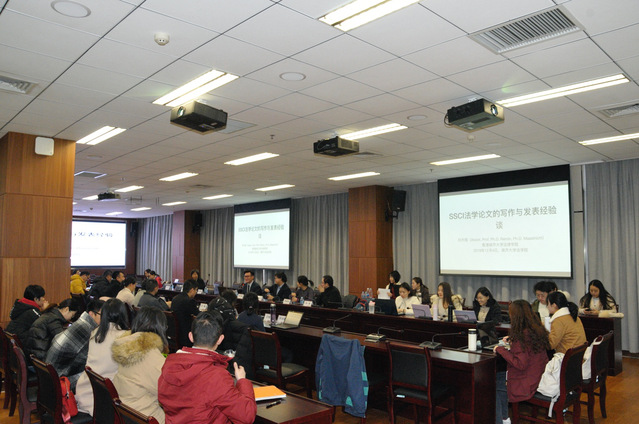 在之后的交流环节讲座后,我院师生与何老师交流了英文法学论文的写作与发表中的困惑。唐颖侠副教授谈到了如何查询SSCI列表中的具体部门法期刊,以及如何引用中文文献的问题。柯振兴博士谈到了关于中国法的相关研究是否必须体现对其他国家的借鉴意义。王鹏副教授谈到了国际法学相关期刊中是否存在更重视跨学科研究的倾向。赵晶晶博士谈到了在回应评审意见修改论文时需要注意的问题。王彬副教授谈到了如果不同评审人意见存在冲突应该如何处理,国际会议论文用于投稿是否属于一稿多发。向波副教授谈到了积攒脚注的问题。李飞副教授谈到了论文写作中引用文献的注意事项。高通副教授谈到了期刊的查重问题。在场同学也提出了各自感兴趣的问题。何老师一一给出了自己的意见与建议。至此,学术盛宴圆满结束。