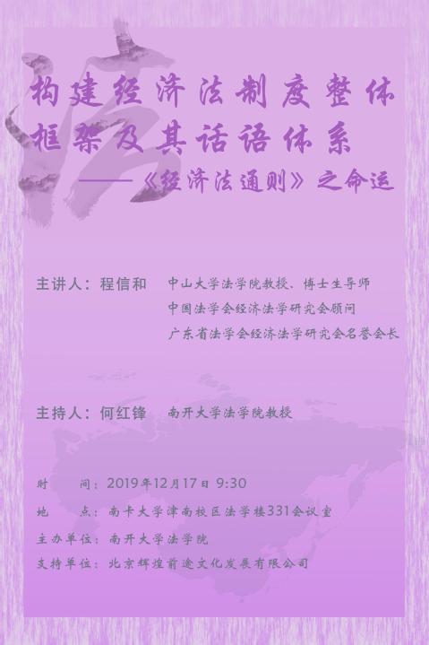 讲座预告:构建经济法制度整体框架及其话语体系——《经济法通则》之命运(12月17日9:30学院331)