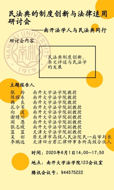 民法典的制度创新与法律适用研讨会议程(南开法学人与民法典同行)