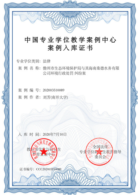 (通讯员 卢思含)2019年中国专业学位教学案例中心案例入库评审结果已经公布,437必赢会员中心刘芳副教授撰写的《儋州市生态环境保护局与其海南桑德水务有限公司环境行政处罚纠纷案》经全国法律硕士专业学位教育指导委员会组织专家评审,在全国各大学院校申报的案例中脱颖而出,成功入选中国专业学位教学案例中心案例库。