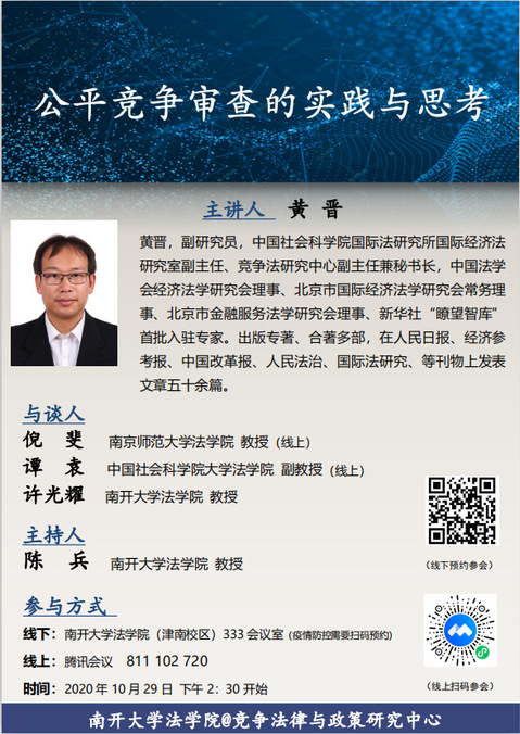 讲座预告:公平竞争审查的实践与思考(10月29日14:30学院333)