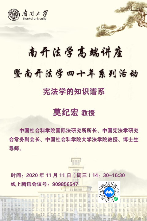 南开法学高端讲座暨南开法学四十年系列活动预告:宪法学的知识谱系(莫纪宏,11月11日14:30)