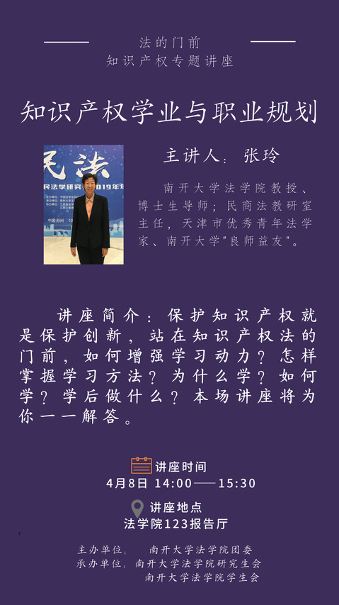 法的门前 知识产权专题讲座预告:知识产权学业与职业规划(4月8日14:00,学院123)