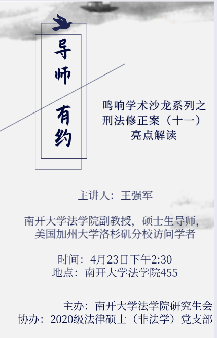 鸣响学术沙龙第59期暨导师有约活动:刑法修正案(十一)亮点解读