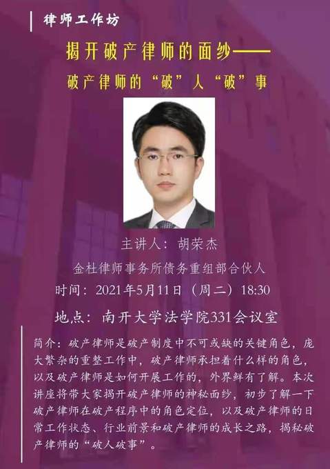 律师工作坊预告:揭开破产律师的面纱——破产律师的“破”人“破”事