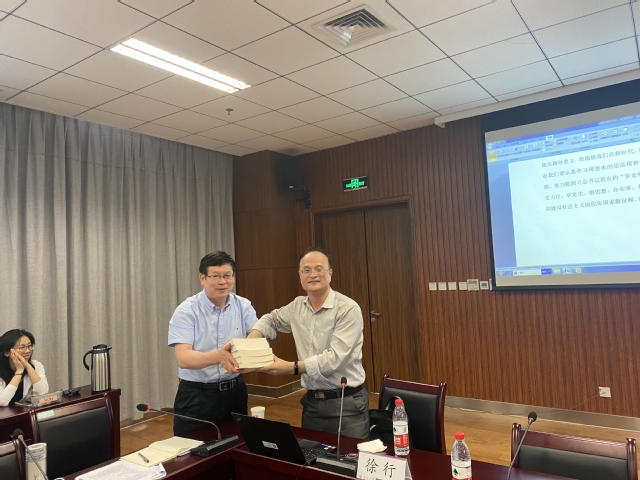 报告结束后,徐行教授向学院捐赠由我校周恩来研究中心编写的周恩来研究国际学术研讨会论文集,学院院长付士成接收赠书并表达感谢。赠书将作为党史学习教育资料陈列在学院党员活动室供师生阅读学习。